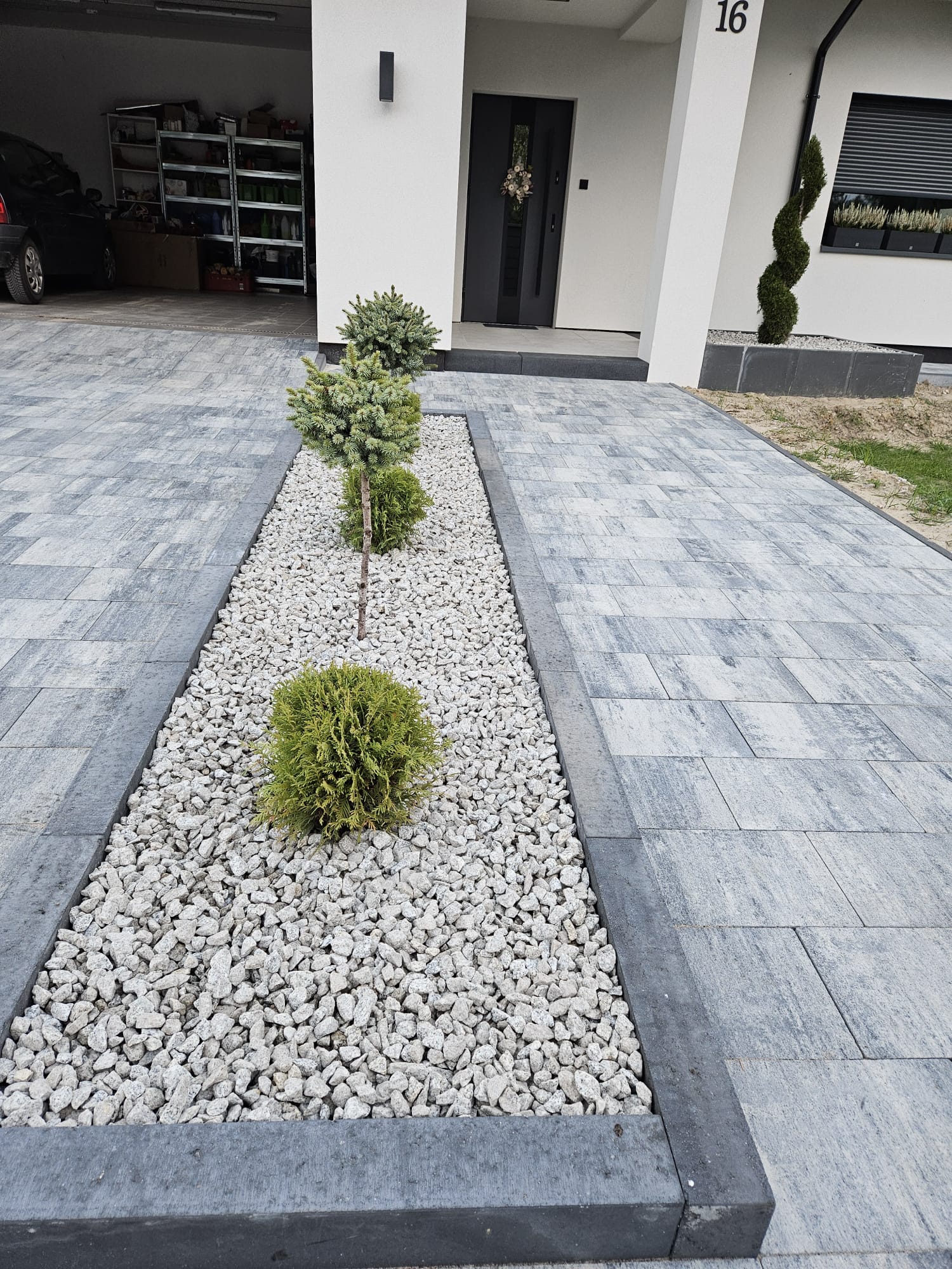 Taras z kamienia granitowego jest niezwykle efektowny. Grys granitowy ma świetne właściwości, gdyż nie jest nasiąkliwy, a jednocześnie jest odporny na blaknięcie pod wpływem promieniowania słonecznego. Oczywiście nie można zapomnieć o jego odporności na uszkodzenia, pękanie, a także zarysowania czy ścieranie. Taras z kamienia granitowego świetnie podkreśli nowoczesną aranżację elewacji i doskonale skomponuje się z meblami ogrodowymi technorattanowymi czy drewnianymi.